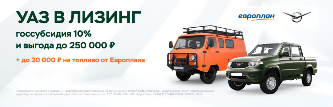Подробности акции уточняйте в Автоцентре "УАЗ – Восточный Ветер" и на сайте ЛК Европлан.